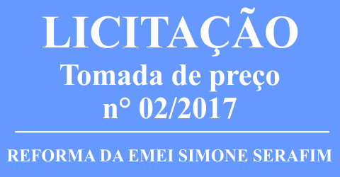 Tomada de Preço nº 02/2017 – Contratação de empresa especializada com material e mão-de-obra para executar reforma na EMEI Simone Serafim.