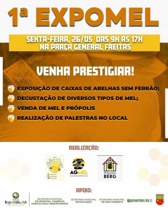 A prefeitura de Sapucaia do Sul, através das Secretarias de Indústria, Comércio, Agricultura e Abastecimento, de Educação e de Meio Ambiente, promovem a 1ª EXPOMEL.