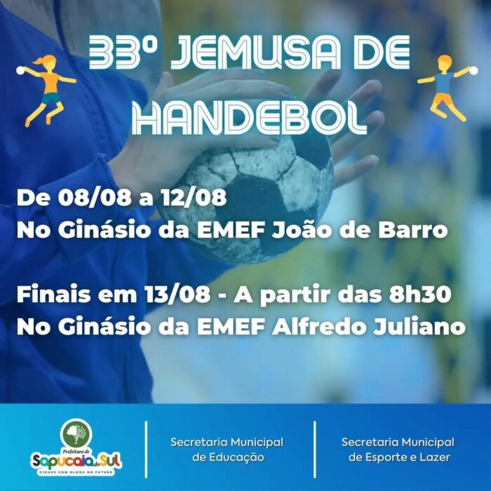 A Prefeitura de Sapucaia do Sul, através das secretarias de Educação e Esporte e Lazer, realiza na próxima semana, o 33° JEMUSA de Handebol.