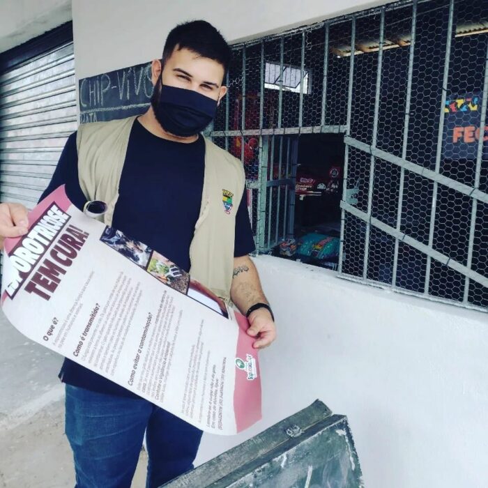 A Vigilância Ambiental segue com as avaliações de animais com suspeita de Esporotricose e com a divulgação junto ao comércio local, a respeito desta doença que pode atingir animais e humanos.