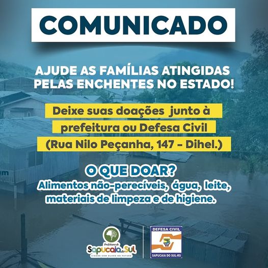 A prefeitura de Sapucaia do Sul manifesta profundo pesar e solidariedade às pessoas atingidas pelas fortes chuvas que atingiram o Estado nos últimos dias.
