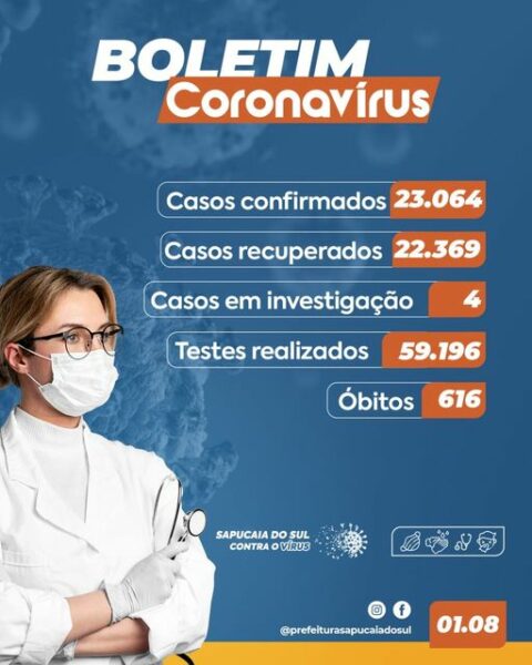 Sapucaia do Sul registrou 46 novos casos e nenhum óbito por Coronavírus. Com isso, o Município soma 23.154 casos confirmados, 22.438 pessoas recuperadas e 616 óbitos ao todo, 02 pessoas estão hospitalizadas e 98 em isolamento domiciliar.