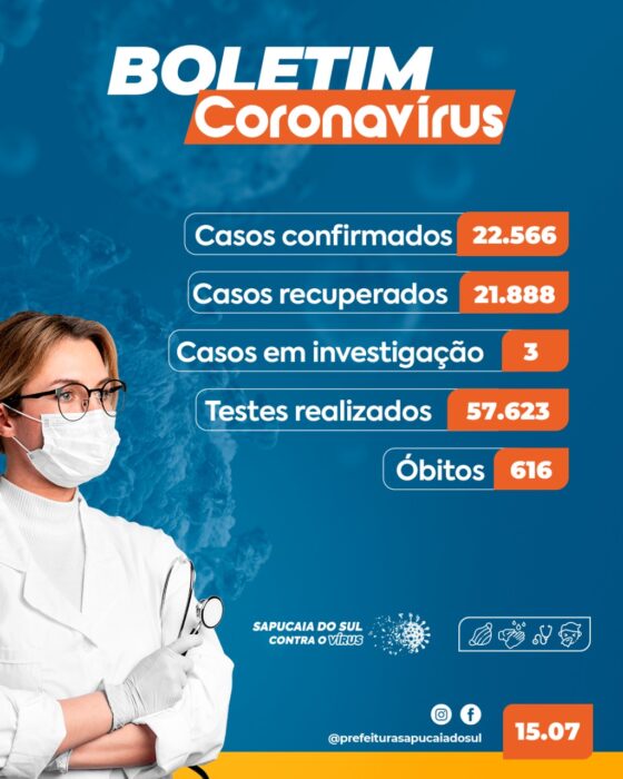 Até o momento, foram realizados 57.623 testes, sendo que 35.054 deram negativos e 03 seguem em investigação, aguardando o resultado do exame.