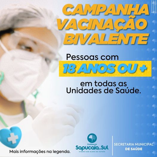 A Prefeitura de Sapucaia do Sul, através da secretaria Municipal de Saúde, informa que a partir dessa quarta-feira (26), está ampliando os grupos receptores das doses da Vacina Bivalente para pessoas com 18 anos ou +.