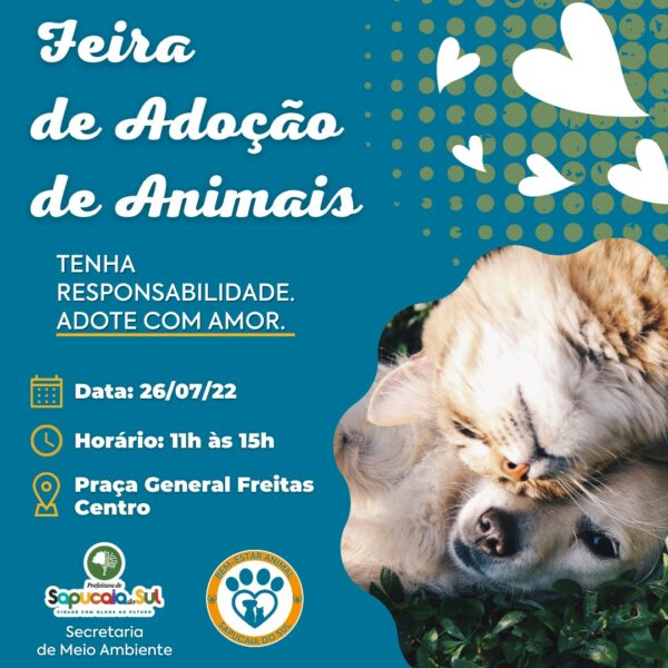 A Prefeitura de Sapucaia do Sul, através da secretaria do Meio Ambiente e Bem-Estar Animal realiza amanhã (26), mais uma feira de adoção de animais em Sapucaia do Sul, e dessa vez o lugar escolhido para sediar o evento será na Praça General Freitas, das 11h às 15h.