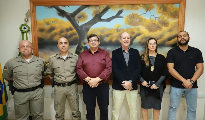 O prefeito de Sapucaia do Sul, Volmir Rodrigues, secretários municipais e vereadores, representantes da Acis e CDL receberam, na tarde desta quinta-feira (25), a visita do futuro comandante do 33º Batalhão de Polícia Militar (33°BPM) da Brigada Militar, major Márcio Leandro Silva da Silva, acompanhado do atual comandante da corporação, tenente-coronel Medeiros.