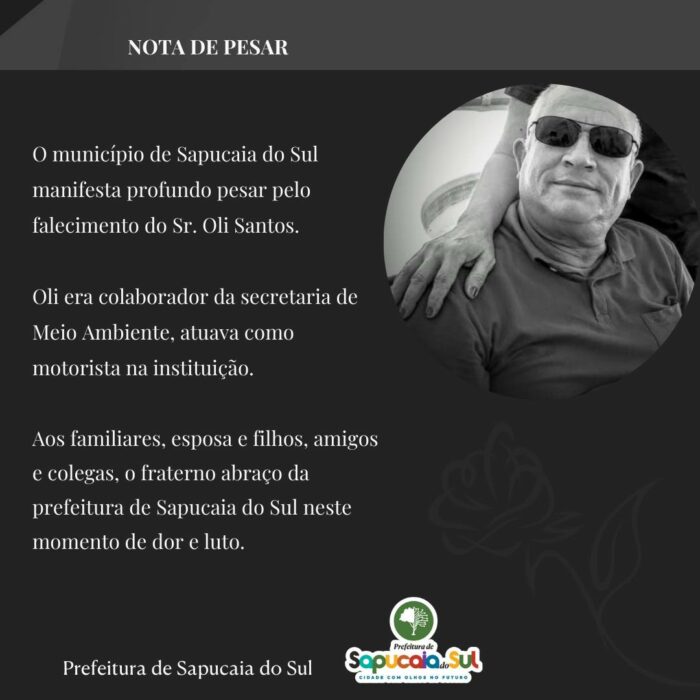 O município de Sapucaia do Sul manifesta profundo pesar pelo falecimento do Sr. Oli Dias dos Santos.