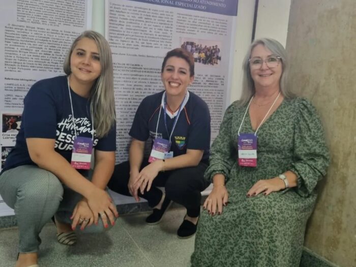 Sapucaia do Sul foi representada pelas professoras Júlia Duarte e Lucirene Fernandes na apresentação do trabalho desenvolvido em Sapucaia do Sul, junto à comunidade surda, com o título: “Colcha de retalhos: a relevância da interdisciplinaridade no processo de ensino e aprendizagem do aluno surdo no Atendimento Educacional Especializado – AEE”.