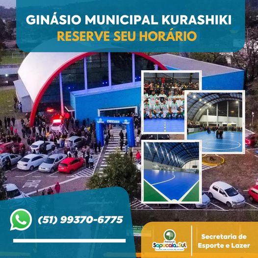 A prefeitura de Sapucaia do Sul, através da secretaria de Esporte e Lazer comunica que está aberta a agenda para reserva do Ginásio Municipal Kurashiki!