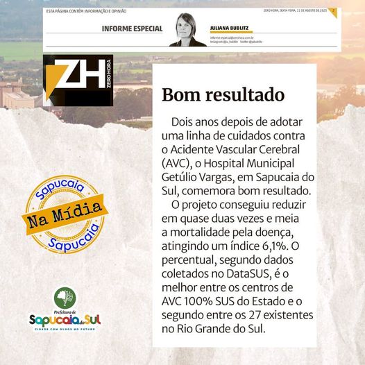 Hoje (11), as conquistas do Hospital Municipal Getúlio Vargas (HMGV) são destacadas nas páginas do Jornal ZH.