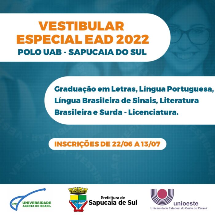 As inscrições para o Vestibular ocorrem de 22 de junho até as 17h do dia 13 de julho, exclusivamente, no site: www.unioeste.br/ead.